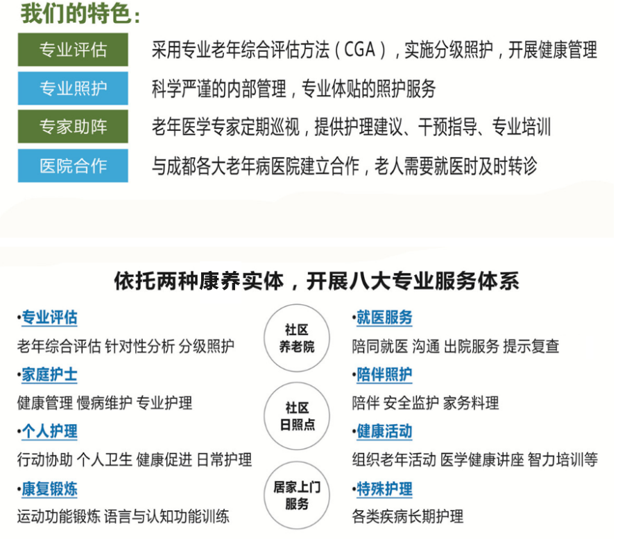 成都怡倍康養(yǎng)老服務(wù)有限公司是一家按照“康養(yǎng)結(jié)合”模式運營的專業(yè)化養(yǎng)老機構(gòu)。我們與四川大學(xué)華西醫(yī)院老年醫(yī)學(xué)中心合作,專注于社區(qū)養(yǎng)老,并在實踐中堅持關(guān)注老年人身心健康。